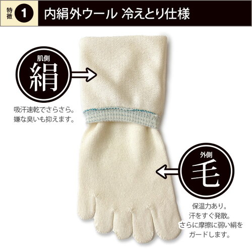 商品名 内絹外ウール5本指ソックス 商品紹介 ・内側シルク、外側ウール。